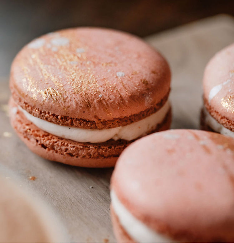Our classic French macarons are edible works of art. These sweet meringue-based confections are made with egg white, icing sugar, granulated sugar, almond flour. Choose from fillings of whipped ganache, Swiss meringue buttercream, or raspberry compote.