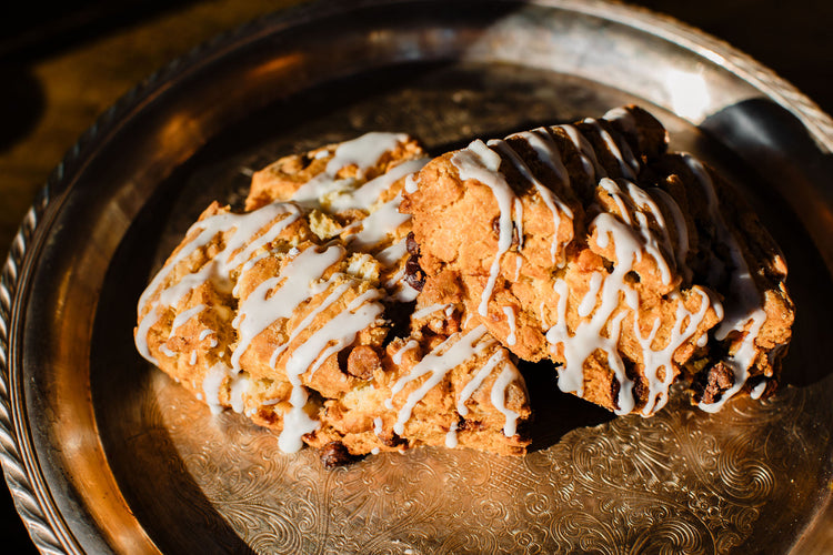 Our scones are tender, buttery treats with a light, crumbly texture. They feature a crisp exterior and a soft, melt-in-your-mouth center. Available in a variety of sweet and savory flavors, each scone is perfect on its own or paired with one of our beverages.